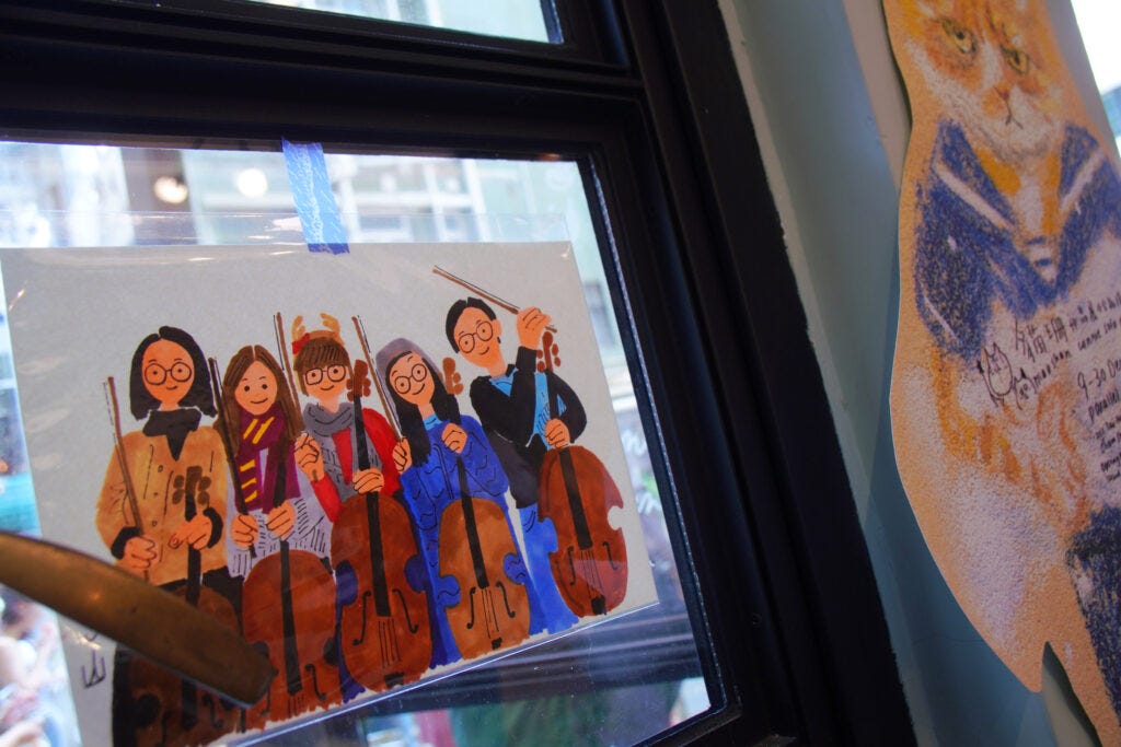 她回想從前還未有港鐵,去新界如出國的歲月。一位會拉大提琴的中學同學情迷柴可夫斯基,而位於港島的 Book Centre 則有一本厚厚的柴可夫斯基傳。買不下的同學遂「情商」書店讓她抄錄,書店更樂意提供椅子,最終讓她抄下整本傳記。