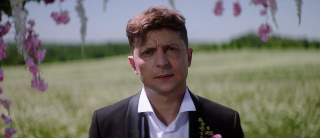 上圖就是 2018 年澤倫斯基主演電影 Я, Ты, Он, Она 的宣傳片截圖,依然保持烏克蘭國產片最高票房記錄。